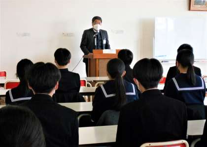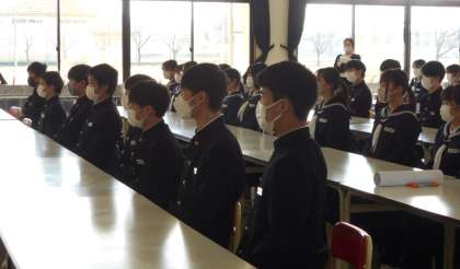 3年生 県立高校一般入試激励会 公開日 2023/03/07 更新日 2023/03/07 3年生 3月7日(火) 3年生は、明日・明後日と実施される県立高校一般入試に向けて、激励会を行いました。 3年生のみなさん、体調を整えて、気持ちを落ち着けて、自分を信じて、ベストを尽くしてきてください。応援しています。 写真上:校長先生から激励の言葉をいただきました。 写真中:学年主任の先生から諸注意等、最終確認のお話がありました。 写真下:みんな真剣に集中して話を聞いています。