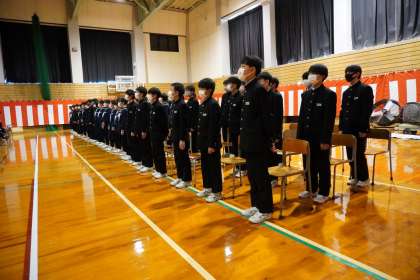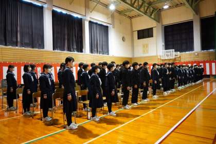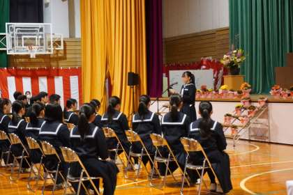 卒業式7 公開日 2023/03/16 更新日 2023/03/16 学校行事 在校生を代表して、令和4年度後期生徒会長が送辞として、卒業生へ思い出や感謝の気持ちを伝えました。 在校生全員で、送別の歌を合唱しました。