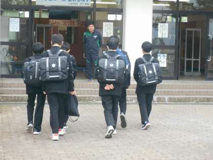上・中:登校の様子です。