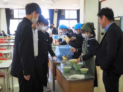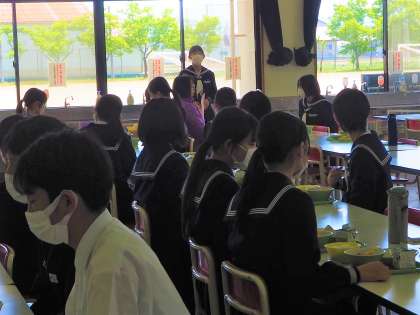 2A 給食の様子 公開日 2023/05/02 更新日 2023/05/02 学校生活 ランチルーム給食の様子です。給食当番は、人数分ぴったり盛るのに苦労していました。「あれ?足りんくない?」「これ苦手なん!」最後は、無事「いただきます」ができました。