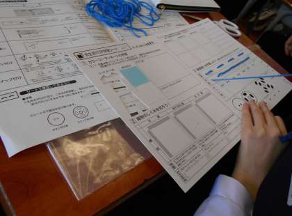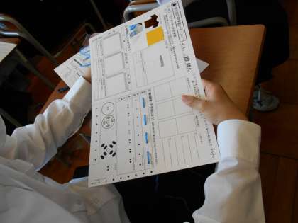 家庭科の様子です。今日は裁縫の基本を復習です。並縫いも返し縫いもとても丁寧に取り組んでいました。
