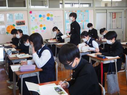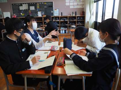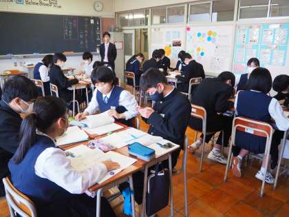 国語の様子です。自分の考えをグループで意見交換させ、全体で共有していました。