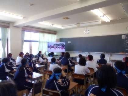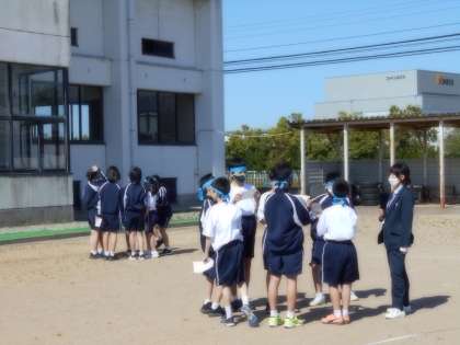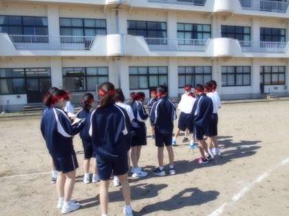 体育大会に向けての活動でした。先輩方の映像を視聴した後、グラウンドで団活動をしました。今日はそれぞれの団で思いっきり声を出し、団歌を歌いました。