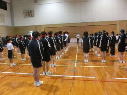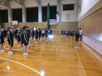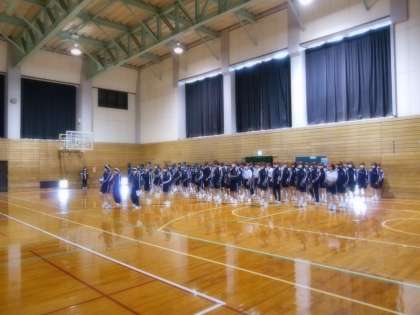全体練習の様子です。開閉会式の流れを確認しています。