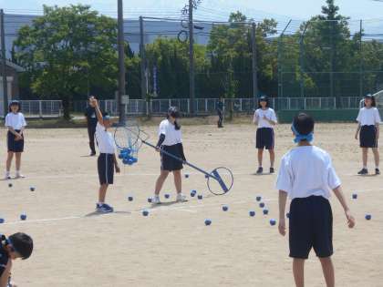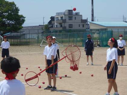 学年ごとに競技し、玉の入った合計を競います。