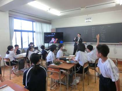 英語の様子です。ALTの先生とI can/I can'tの表現を学習しました。