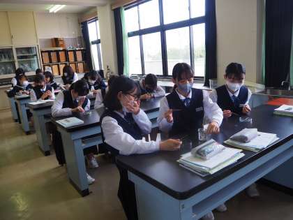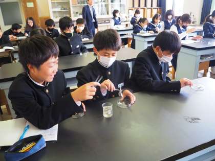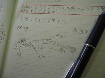理科の学習の様子です。学習課題は「動物のからだの外部と内部のようすを観察し、その特徴をとらえよう」です。カタクチイワシ(煮干し)の観察をしていました。