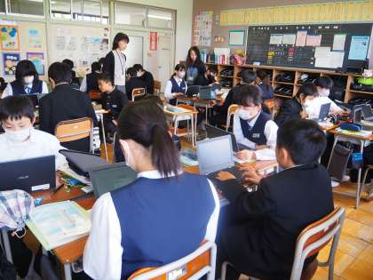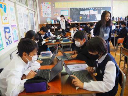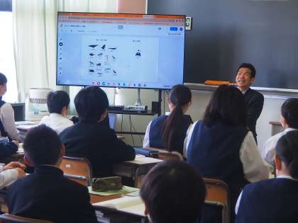 理科の学習の様子です。クロームブックを使って、セキツイ動物を様々な視点で分類しました。