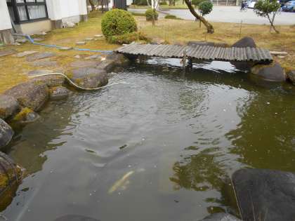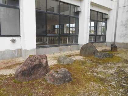 中・下:生徒玄関前の石庭です。