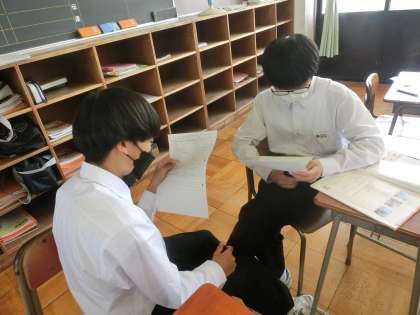 英語でペア学習しています。一方が和文、もう一方がそれに対応する英文を言い合いました。