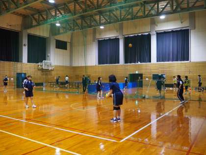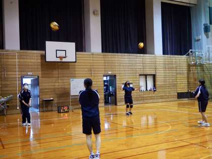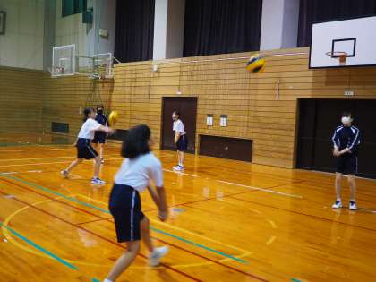 バレーボール部です。声をかけ合いながらパスを回していました。3年生中心にチームワークで活動を進めています。
