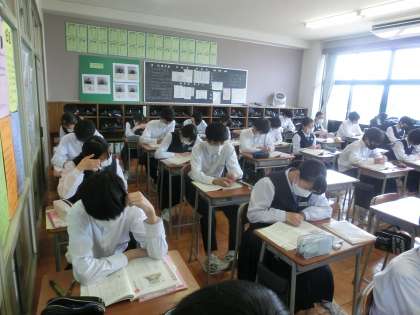 国語 単語の分類について学びました。その後、『「自分で考える時間」をもとう』をグループで音読しました。