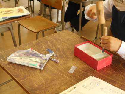石彫を作っています。抽象彫刻という難しい課題ですが、集中して取り組んでいます。