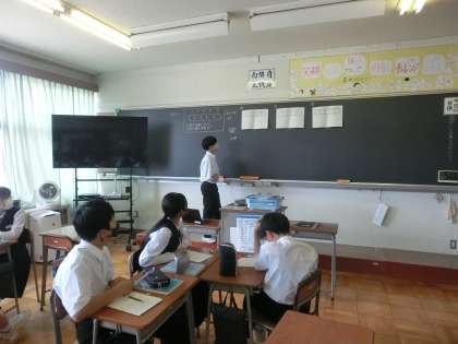 数学 正負の数が終わり、今日から文字と式に入りました。 棒の本数の求め方をグループで話し合い、発表しました。
