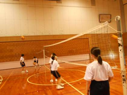体育「バレーボール」の様子です。アタック練習に続いて実践練習です。パスが繋がるようになってきました。