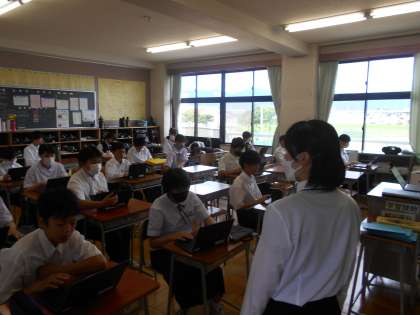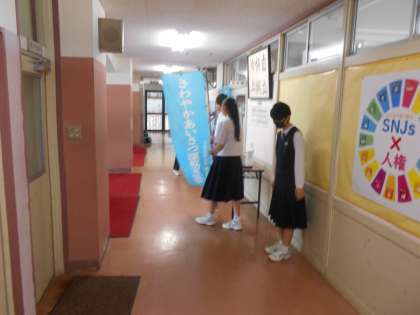 上:登校の様子です。 中:さわやかあいさつ運動の様子です。 下:1A朝の教室の様子です。