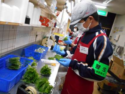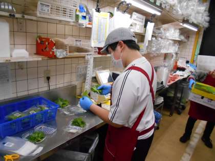 2学年「14歳の挑戦」1日目 アルビス ミューズ店 公開日 2023/07/03 更新日 2023/07/03 2年生 今日は午前中に品出しをしました。写真は大葉の品質をチェックしている様子です。生徒たちはとても熱心に作業に取り組んでいました。