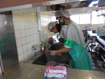 生徒たちは今まで見たことのない食器の多さに驚いていました。大変ながらも「自分たちが準備した食事がきれいに食べてあると嬉しいし、皿洗いもがんばれる」と言っていました。