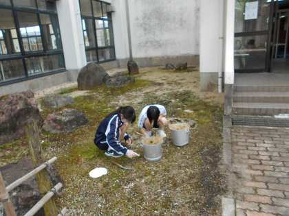 事業所が定休日等で休みの生徒は三成中学校で活動しています。学校の環境整備の仕事をしました。生徒たちは、暑い中黙々と活動していました。