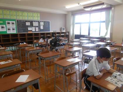 朝の教室の様子です。 上:1A 下:2A 事業所の休日等で2年生、3名が学校敷地内で活動をします。