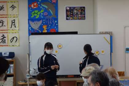 2学年「14歳の挑戦」3日目 介護老人保健施設レインボー 公開日 2023/07/06 更新日 2023/07/06 2年生 「14歳の挑戦」も3日目となり折り返しを過ぎました。 施設内でレクリエーションの補助をしました。利用者の方と一緒に楽しんでいました。