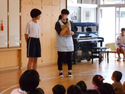 2学年「14歳の挑戦」5日目 愛和こども園 公開日 2023/07/10 更新日 2023/07/10 2年生 今日は七夕の会に参加しました。生徒たちは最終日ということもあり、園児と別れるのが寂しそうな様子でした。