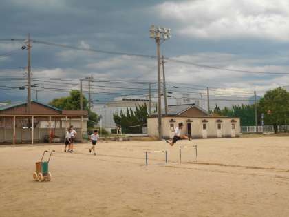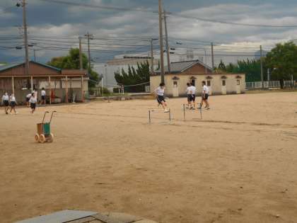体育「ハードル走」の様子です。