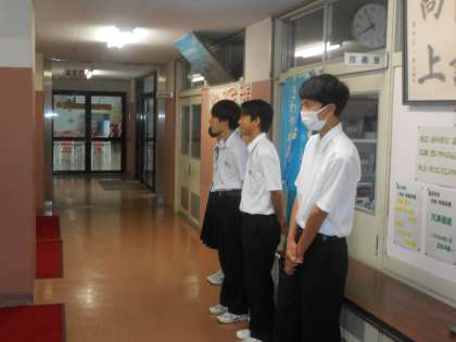 上・中:登校の様子です。 下:さわやかあいさつ運動の様子です。