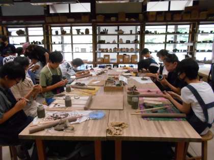 陶芸体験の様子です。集中して取り組み素敵な作品になりました。焼き上がりが楽しみですね。