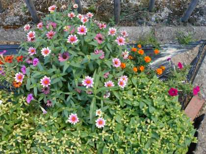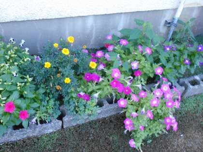 厳しい暑さが続いています。休み中環境委員の生徒が水やりをしてくれました。花壇の花は暑さに負けずきれいに咲いています。