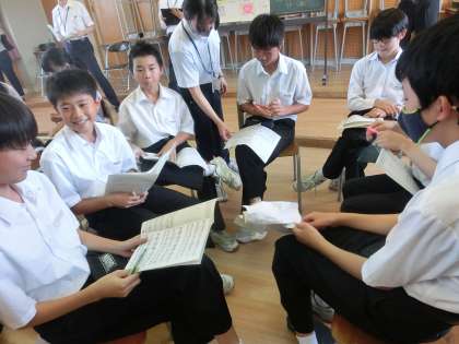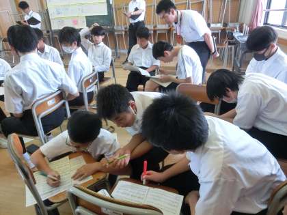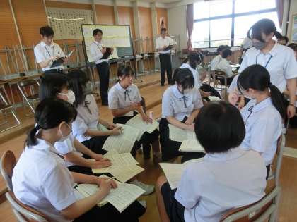 音楽 合唱コンクールのパートに分かれて、話し合いをしています。