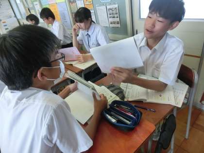 国語 聞き上手になろうという課題でペアになってインタビューしました。