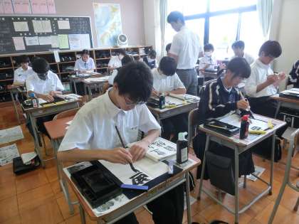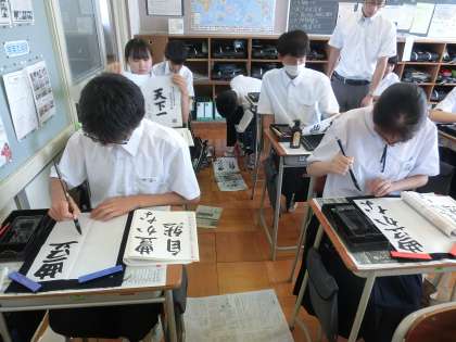 書写 「豊かな自然」を行書で書いています。