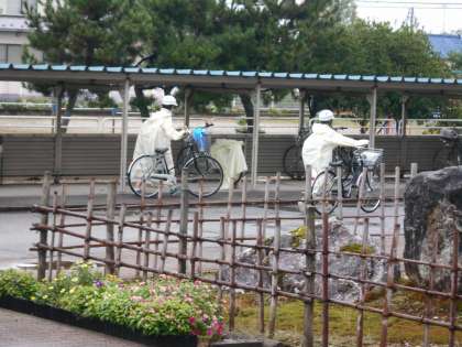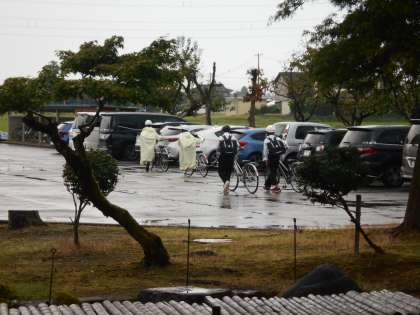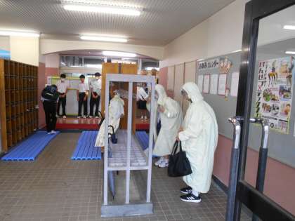 登校の様子です。 登校の時間帯に強い雨が降りました。