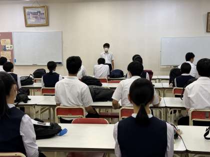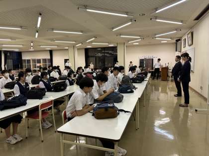修学旅行に先立ち、出発式を行いました。お世話になる添乗員の方々にも挨拶をしました。周囲の人へ感謝の気持ちをもって、みんなで笑顔で行ってきます!