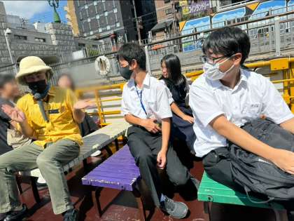 3年生 修学旅行 とんぼりクルーズ 公開日 2023/09/28 更新日 2023/09/28 3年生 大阪は、道頓堀にやってきました!なにわ節炸裂、落語家さんの楽しい案内で、大阪の街を川から探検しました!