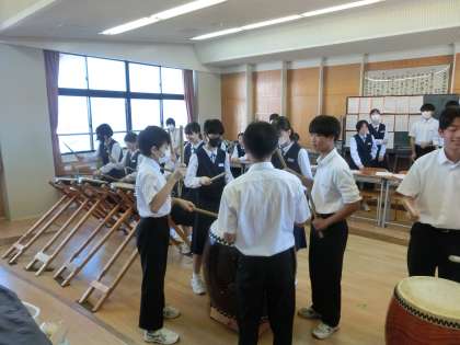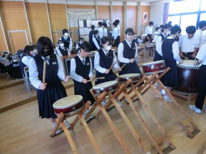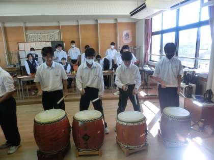 音楽 前回に引き続き三成太鼓の練習をしています。