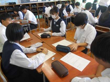 2学年 合唱コンクールスローガン決め 公開日 2023/10/02 更新日 2023/10/02 2年生 合唱コンクールのスローガンについて話し合いました。今日は生徒一人一人の思いを出し合い、意見交換をしました。この後、リーダーを中心にスローガンを決定していきます。