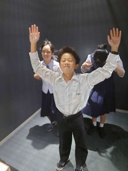 科学博物館を訪れた班の様子です。体験コーナーに夢中です。