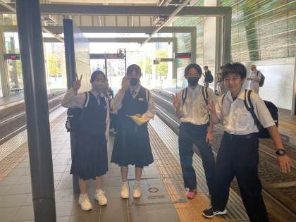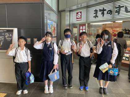 1学年 校外学習 富山駅を通過 公開日 2023/10/03 更新日 2023/10/03 1年生 多くの班は、富山駅を移動の拠点にしています。 美味しくて有名な店でおにぎりを買っている班もありました。この後、環水公園でランチタイムのようです。