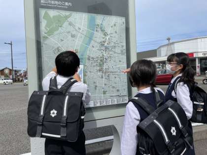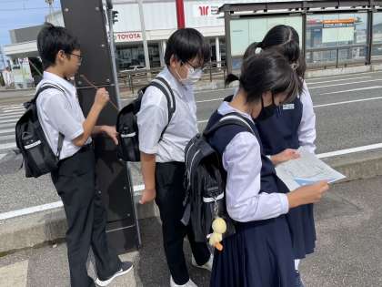 こちらは市電に乗って水墨美術館に向かっている班です。下車後、向かう方面を迷っていましたが、班で協力し合い無事に到着しました。