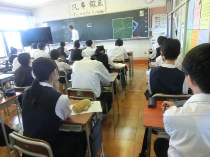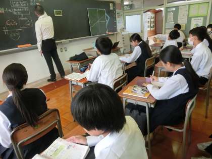 数学 一次関数のグラフをもとに変化の割合について学習しています。