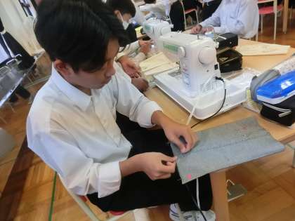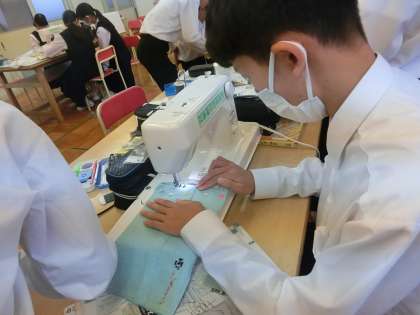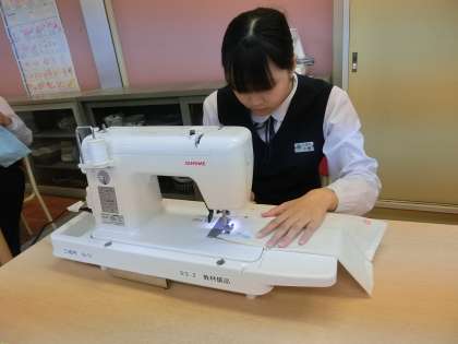 家庭 ティッシュボックスカバーをミシンで作成しています。