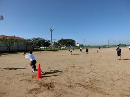 体育 男女混合チームでソフトボールの試合をしています。