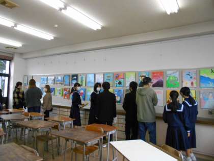 展示発表・見学の様子です。各教科の学習の成果としてのレポートや作品等、それぞれのがんばりが伝わってきました。