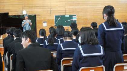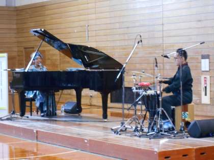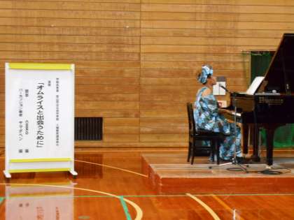 パーソナリティでシンガーのCHIKOさん、パーカッションのヤマダベンさんをお招きして、人権教育講演会を行いました。