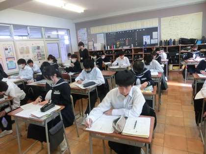 英語 昨日の中教研学力調査が返却され、直しをして自分のこれまでの定着度を振り返りました。