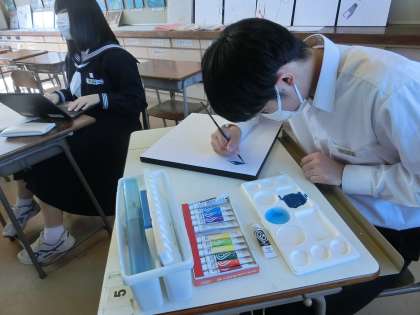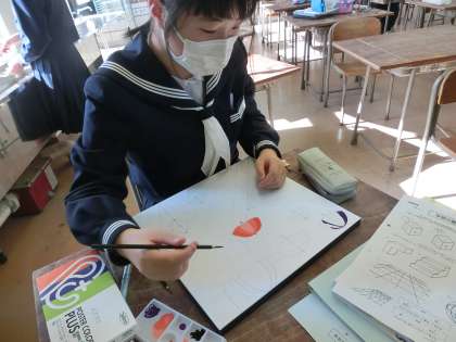 美術 立体感を出す塗り方を意識しながら、彩色しています。