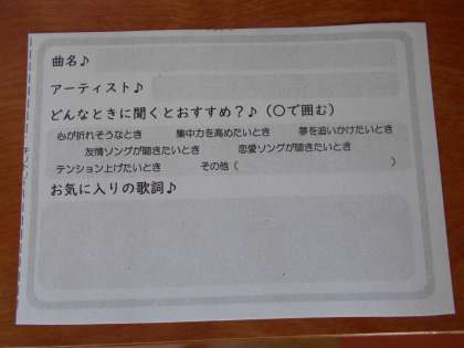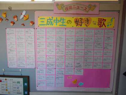 先日HPで紹介した「教えてください あなたの好きな歌」コーナーに続々と投稿がありました。生徒の皆さんありがとう。