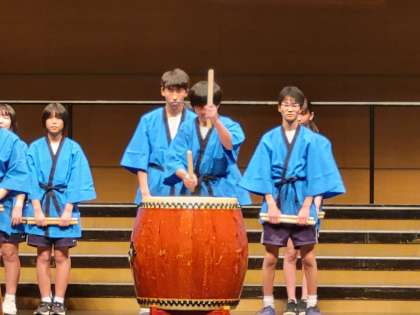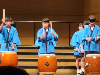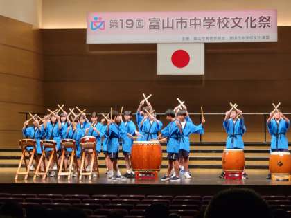 富山市中学校文化祭での三成太鼓の様子です。